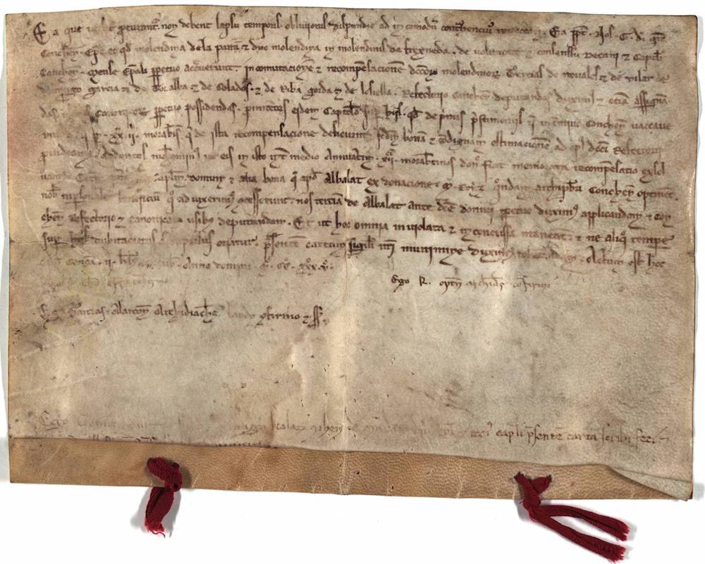 Litterae executoriae de Juan de Abbeville, Cardenal-Obispo de Santa Sabina y Legado Pontificio, por la que promulga el Estatuto que pretende corregir algunas corruptelas del Cabildo. Manda que no se subdividan las prebendas y condiciona el disfrute de sus beneficios al cumplimiento de la residencia. |