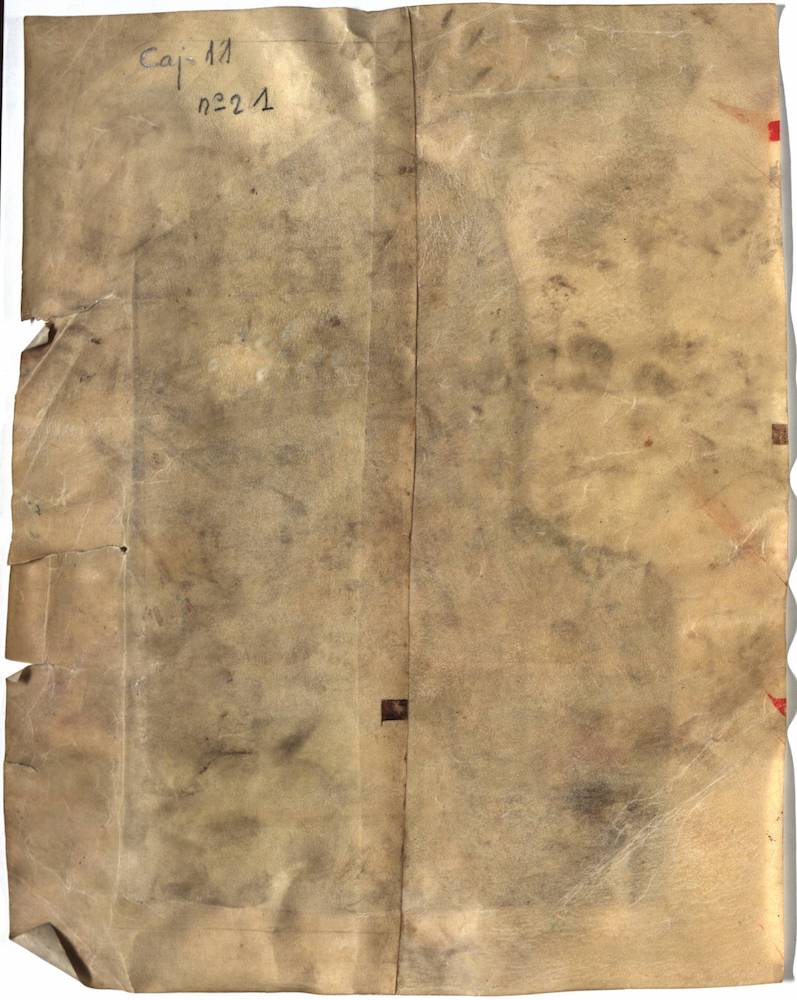 A.- A. C. C., I, caja 11, nº. 21. (Olim C. 3, L. 13, Nº. 175). Pergamino partido por abc en su parte superior de 277 x 190 mm. Gótica de albalaes. Tinta ocre. Mala conservación, faltan varios fragmentos.