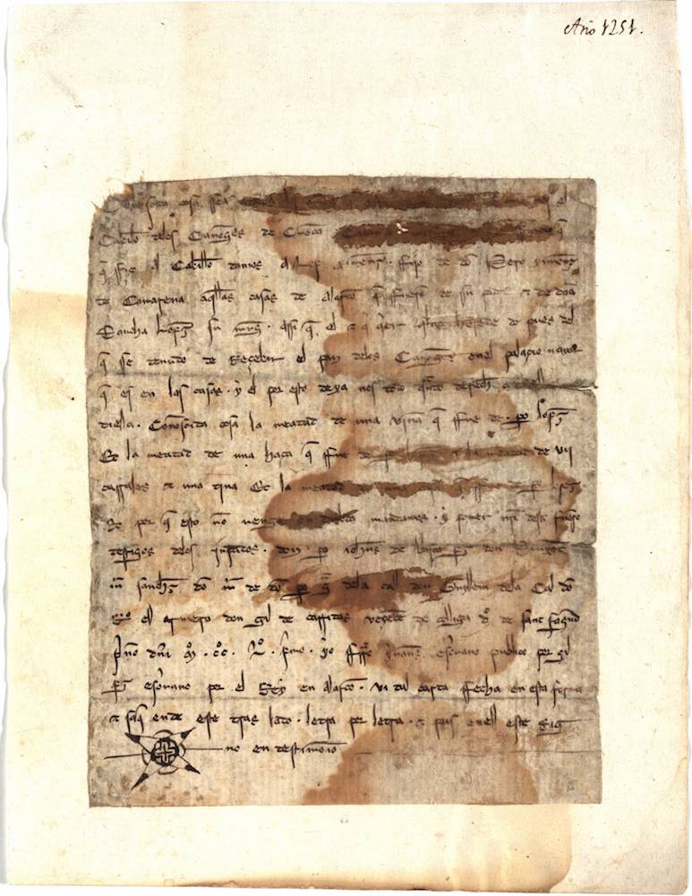 A.- A. C. C., I, caja 11, nº. 25. Papel de 188 x 152 mm. Gótica semicursiva. Castellano y latín. Tinta ocre. Regular conservación.