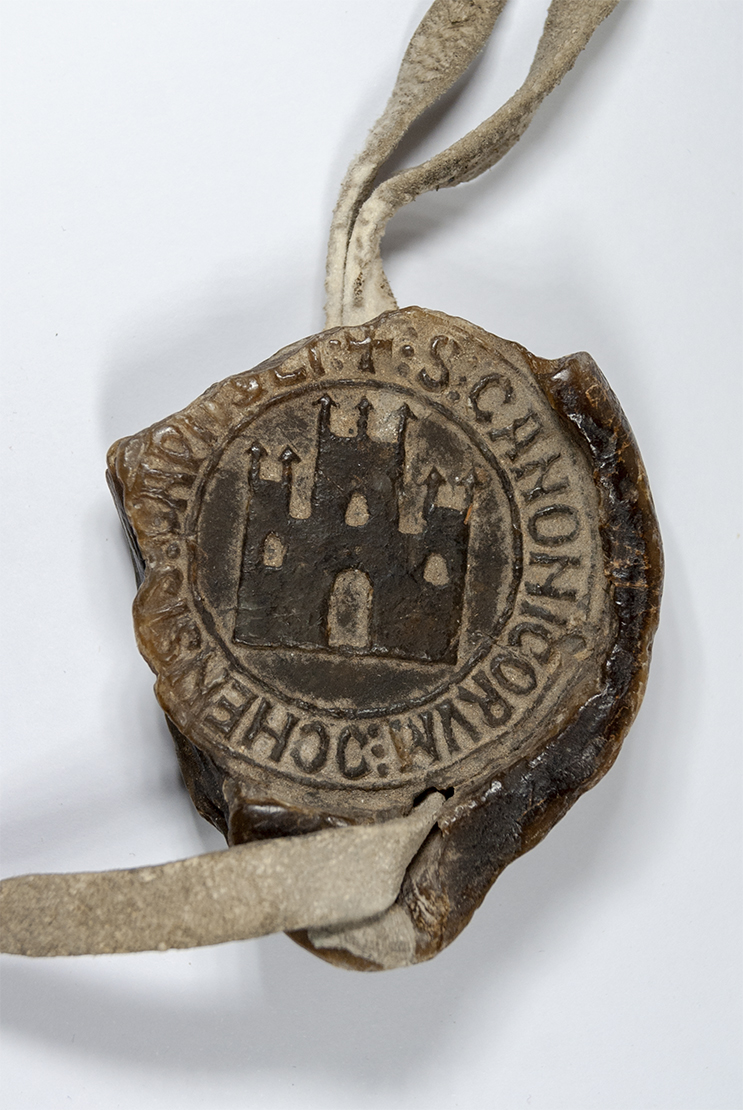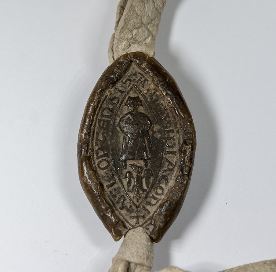 A.- A. C. C., I, caja 2, nº. 16. Pergamino partido por abc en su parte inferior de 330+65 x 575 mm. Minúscula diplomática. Latín. Tinta ocre. Conserva dos sellos de cera pendientes de los cuatro que ha tenido.