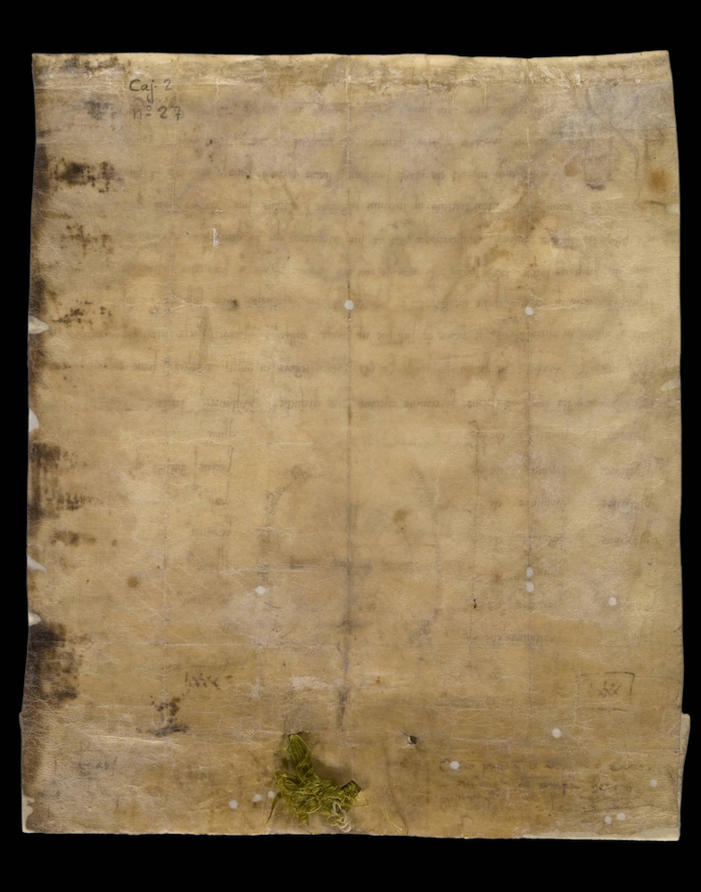 A.- A. C. C., I, caja 2, nº. 2. Pergamino de 390+65 x 315 mm. Minúscula diplomática. Latín. Tinta ocre oscuro. Restaurado. No conserva el sello, sólo lemnisco.