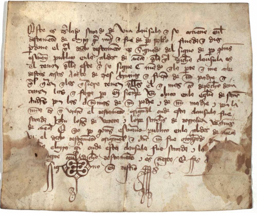 Nota: Se ha situado al final del siglo XIV, aunque por su grafía y dado que en el documento nº. 644 aparece Pedro Pablo, posible marido de Elvira Gómez, ambos documentos pueden ser coetáneos.