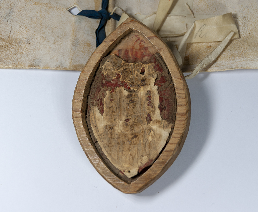 A.- A. C. C., I, caja 3, nº. 2. (Olim C. 4, L. 17, Nº. 243). Pergamino de 605+100 x 435 mm. Gótica cancilleresca. Latín. Tinta ocre. Conserva un sello de cera pendiente y un lemnisco.