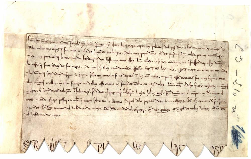 NOTA: Primer cuarto del siglo XIII. El documento se ha datado en el primer cuarto del siglo XIII teniendo en cuenta los testigos que aparecen y sus características gráficas.