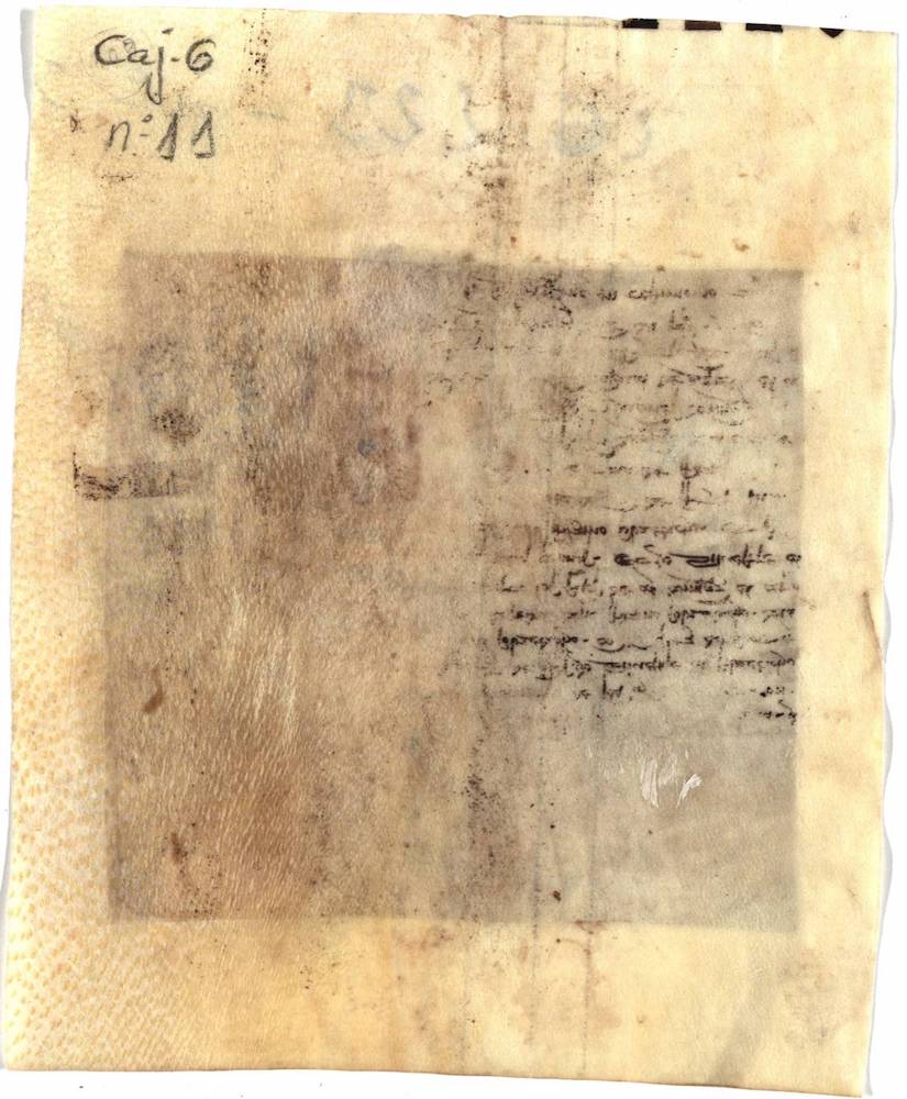 A.- A. C. C., I, caja 6, nº. 11. (Olim Cajón, Nº. 49; C. 6, L. 23 bis, Nº. 355). Pergamino de 110 x 118 mm. Gótica semicursiva. Tinta ocre.