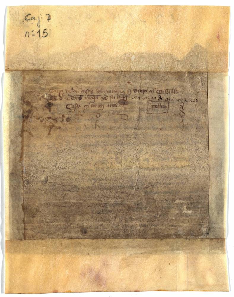 A.- A. C. C., I, caja 7, nº. 15. (Olim C. 3, L. 11, Nº. 154). Pergamino partido por abc en su parte superior de 198 x 200 mm. Gótica semicursiva. Tinta ocre oscuro.