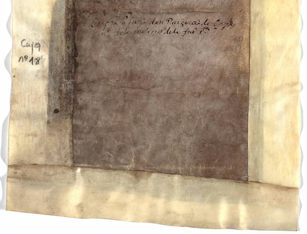 A.- A. C. C., I, caja 9, nº. 18. (Olim Cajón C, Nº. 220; C. 6, L. 23 bis, Nº. 369). Pergamino de 314 x 190 mm. Gótica de albalaes. Tinta ocre.