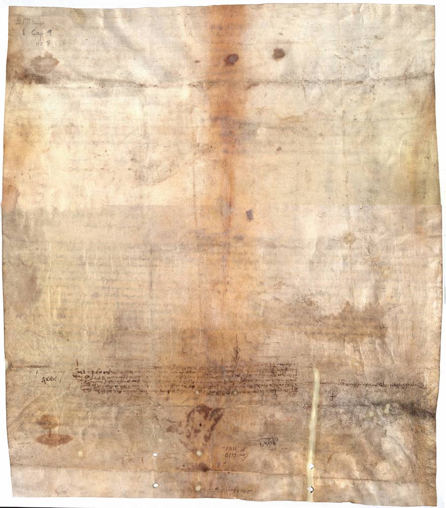 A.- A. C. C., I, caja 9, nº. 8. (Olim Letra F, Nº. 1). Pergamino de 685+40 x 585 mm. Gótica semicursiva. Latín y castellano. Tinta ocre. Restaurado. Faltan los dos sellos.