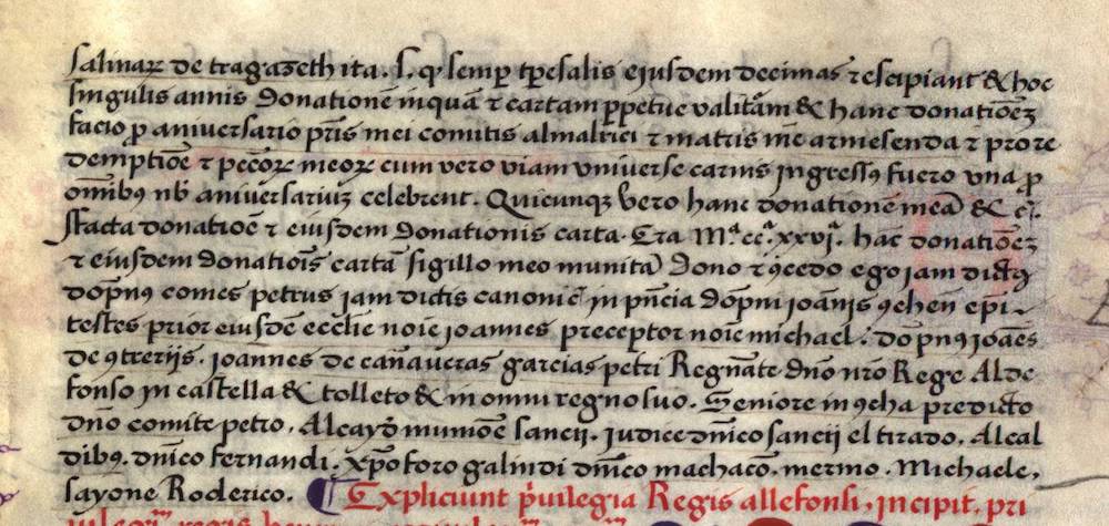 Carta de donación del conde Pedro de Lara y Margelina, su mujer, al Cabildo de las décimas de las salinas de Tragacete con cargo a varios aniversarios.